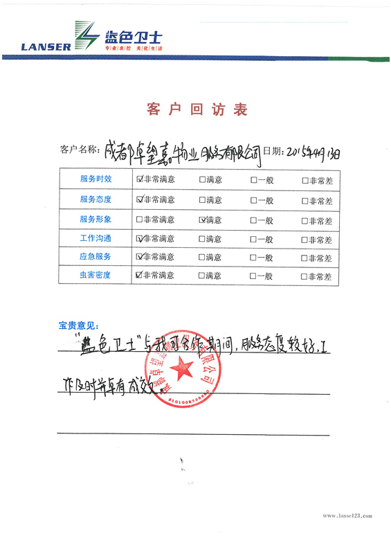 通過合作,對四害的消殺控制的很好,符合項目品質(zhì)要求!